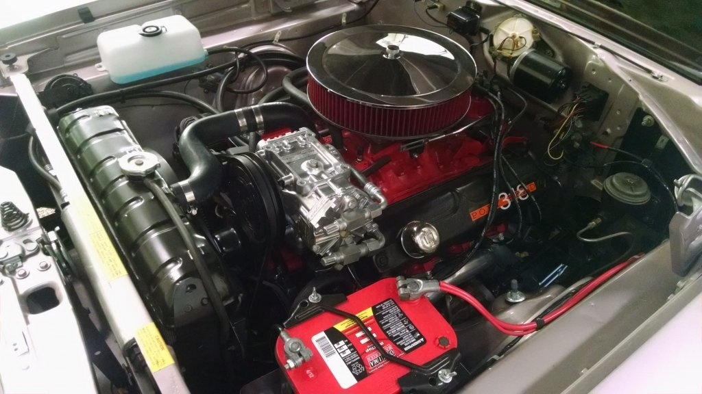 I crinkle painted the valve covers and added "Poly Head 318" decals...The way the SEMI-HEMI should have come. I also kept the power robbing (one lunger) single piston a/c compressor for the nastalgia of it.
