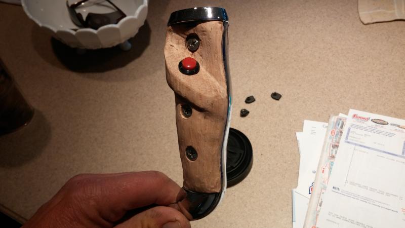 I can't wait to take some to post! �� It was very inexpensive to make, 1.50 for a piece of oak, 3.50 for the switch, 8.50 for a roll of chrome tape and some very thin speaker wire l already had. The rest was just a little time with the die grinder, grinding wheel, dremel and drill press. I do have to find just the right color stain.