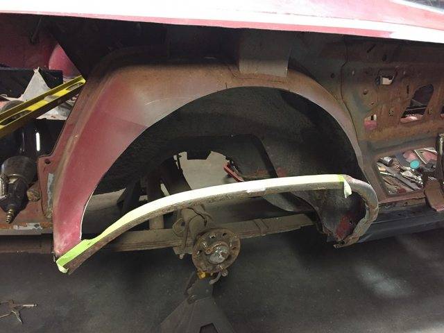 I'd like to improve the clearance somehow. I am not cutting off the quarter panels to do it but I think that after scraping the undercoating off, I could cut out some of the bulge and weld in a patch that offers more room. It won't look as good as this: