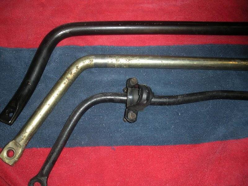 I was looking through the attic for parts to list for sale here and on FABO when I found a 5/8" rear sway bar that my brother in law bought at the Van Nuys Spring Fling in 2012. The center to center of the end link eyelets matches the frame rails of the Charger and would be too wide for the Duster he has. There is another 5/8" bar that is narrower. It is new and has all the hardware so without him knowing, WE traded and he actually got the better end of the deal.