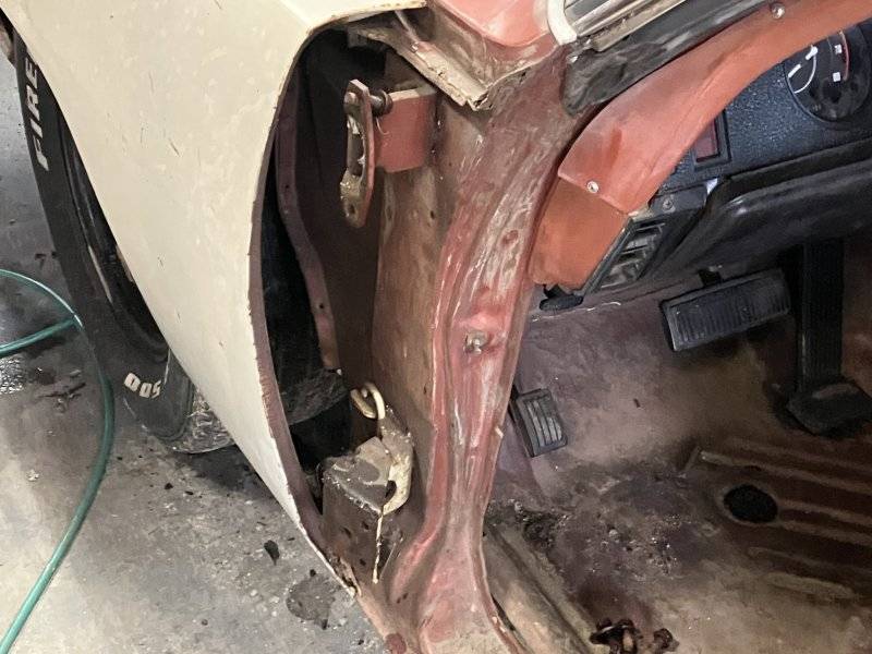 This name "Jigsaw" is really appropriate. Notice the replacement lower hinge. Not much on this car is original.