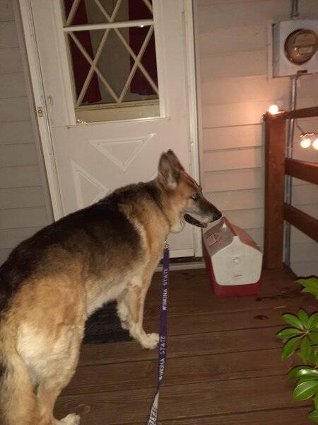 Here's a cute story to uplift everybody I'm in St Paul Minnesota having a few beers with a buddy of mine visiting family and at 1 in the morning this dog wanders into the backyard and Pat and I found the phone number on the coller got a hold of the man and he came and got it he was a veteran and a great guy and he had had honey for 12 years since she was a baby and when I talked to him on the phone he was scared to death so we got honey reunited with her master last weekend and that was a really good thing