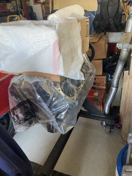 Holes tapped, WD spritzed. Same on pistons/rods and crank. Bagged for storage till assembly time.