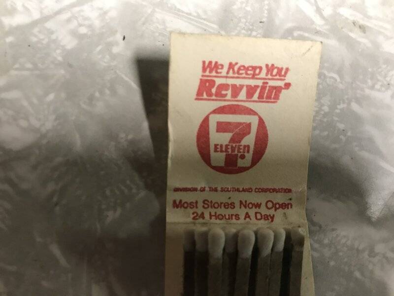 I was going threw some of the old paper that were left in the car and and I found a receipt for a new starter that was dated 1981 $35.00 . The 7-11 matches were kinda neat and the old pop cap I have net seen one like that in 30years !!