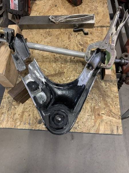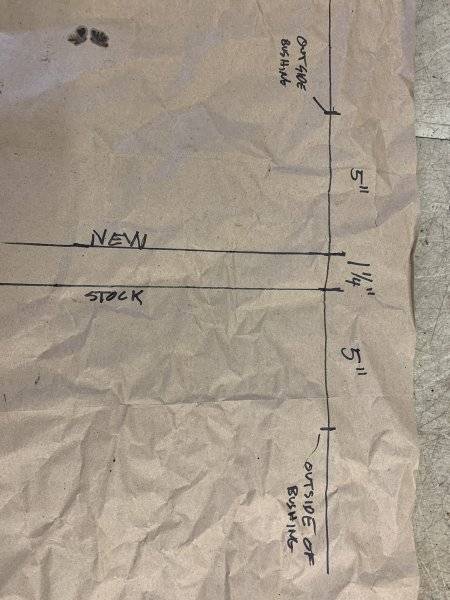 Yes I moved ball joint aft 1 1/4". Cut out 1/2" on aft leg and added 3/4" to forward leg roughly, ground a little to fit. Making proper spring hanger spacer now after the successful test drive.