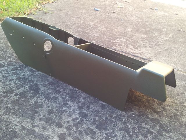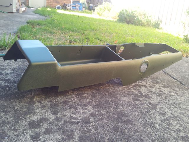 Had a decent crack :bootyshake: in the top of the console and didn't have a spare $500 to grab a new one. I carved a valley with the soldering iron and cut some slivers off the underneath to use as filler and melted it back together. I forgot to take photo's during the repair, but I got one of the underneath afterwards. Because I had to sand the joint I lost the texture off the top, so unfortunately that part is smooth. Doesn't look too bad though. I had some of the leftover EF8 paint made up into spray cans, but it looked a bit bright. I ended up using some of the leftover in my spray gun and the colour came out better. :blob1: