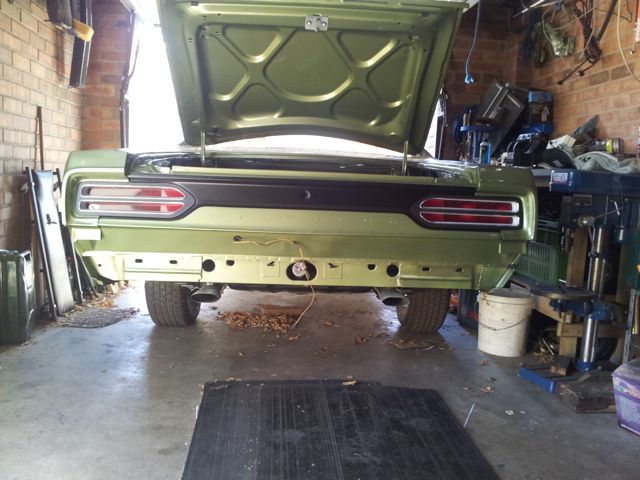 I had a bit of trouble with the taillights because of the repop dome nuts. They wouldn't cut into the bezel shaft. I ended up using small pal nuts and silastic the dome nuts over the top. I also painted the boot body colour as I didn't like it black, just didn't look right. Sorry I listened to the resto shop on that. They talked me out of painting the inside body colour as I first wanted. Maybe it saved them time or something, I don't know. At the time I didn't really know better and took there advice on a couple of things which I ended up fixing myself later. Live and learn. :head_smack: