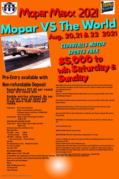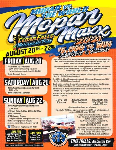 Mopar Maxx 2021 Cedar Falls, Iowa August 20,21, and 22