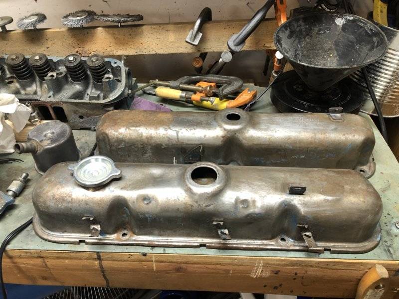 Trying to not go stir crazy so little bit of hobby time is good medicine for me. Cleaned off my old valve covers such that I can replace the chrome ones which I hate.