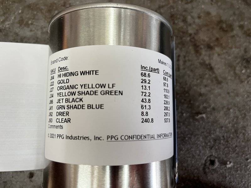 I do. I’ll need to get it for you later this week. Out on the road for work.Do you have the PPG paint code that you had mixed? I see the can has a Shopline label. I'd like to get this mixed too. Thanks