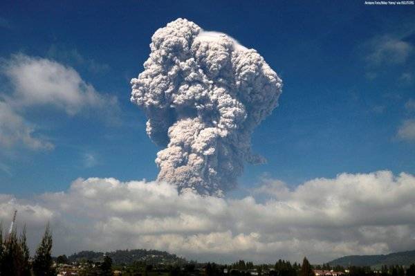Mount Sinabung, on the Indonesian island of Sumatra, unleashed billowing columns of ash more than 16,400 feet into the atmosphere and hot clouds down its slopes.