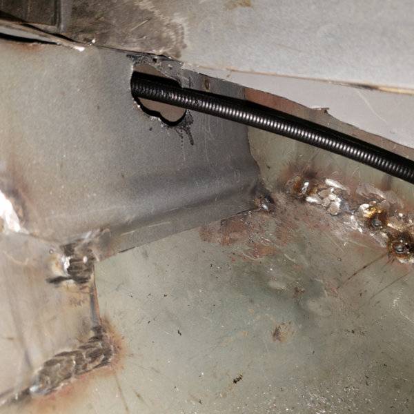 Then, further back, and under the rear seat, the cable comes back out into the passenger area . . .