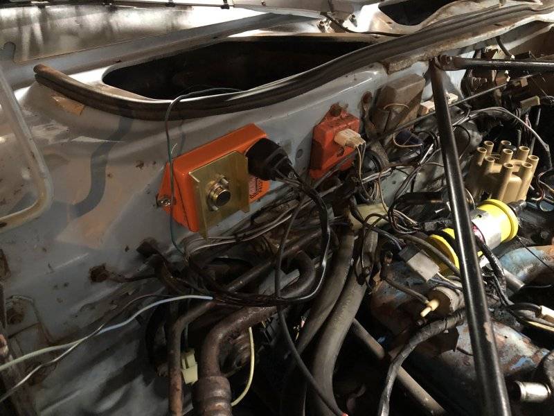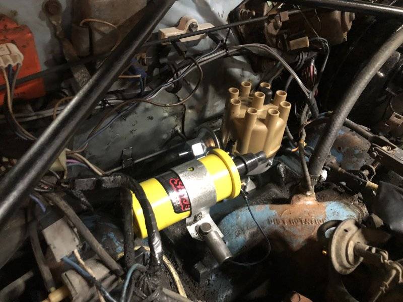 Most of the wiring and the coil went in as did the new distributor (I took Don's advice above and made sure I could adjust the Distributor without the vacuum advance cannister hitting anything)