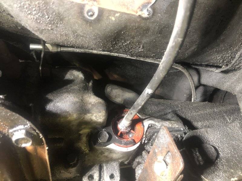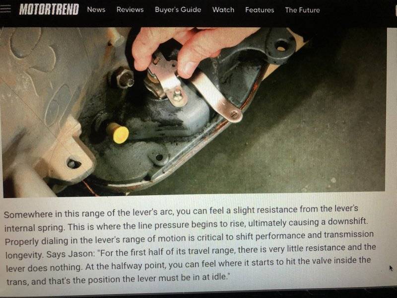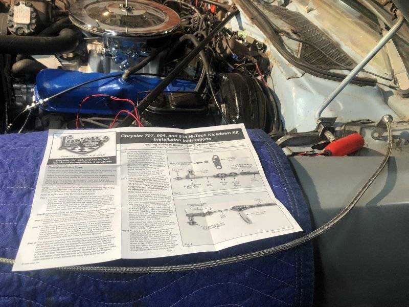 Lokar tell you to install the braided sheath first, and after pissing with this for a while too long, I understood why. The cable bolts up to the trans arm, and does a 180 around the back of the trans and up to the carb - I was so confused up to this point as to how the throttle linkage would move the kickdown cable the correct way....then when I routed it around the back of the trans, doh!!! it all made sense to me. Thanks Lokar.