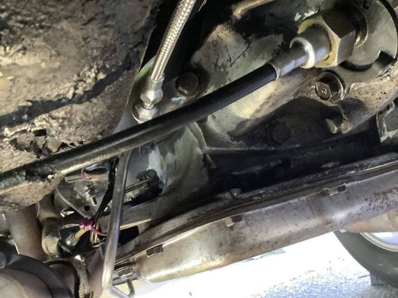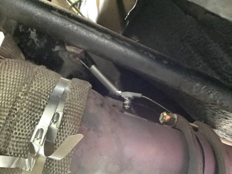 So this morning was unusually warm. I cranked up the afterburner and after maybe five minutes it was too hot in the garage so off came the hat and big coat, and up went the Monaco - on one side mind you, didn't really need to lift the whole car for this kickdown cable install...