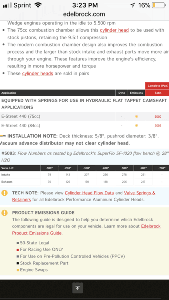 Heads: Edelbrock Performer RPM 84cc 60919. Already purchased and in hand. Bare heads.