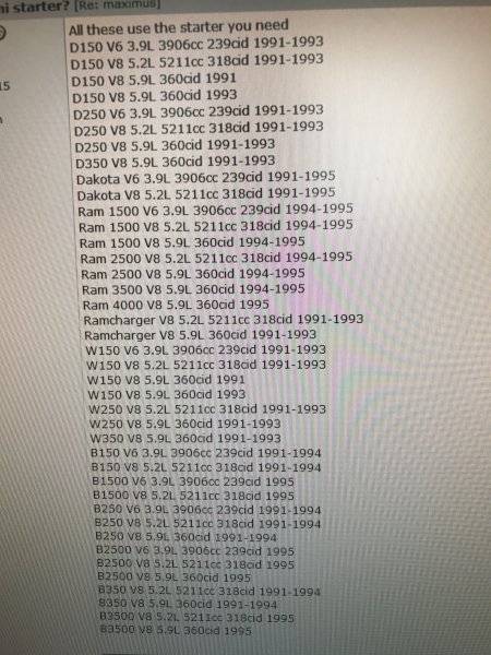 Be sure and get a genuine starter with a Chrysler, Denso, or Nippondenso nameplate on it. The Chinese copycats flooding the market (advertised at parts stores as "100% new!") are junk. A used genuine starter from a wrecking yard is preferable to a new fake/Chinese or "remanufactured" starter."