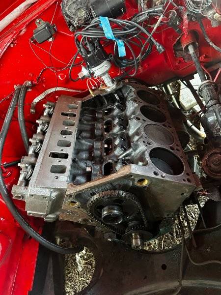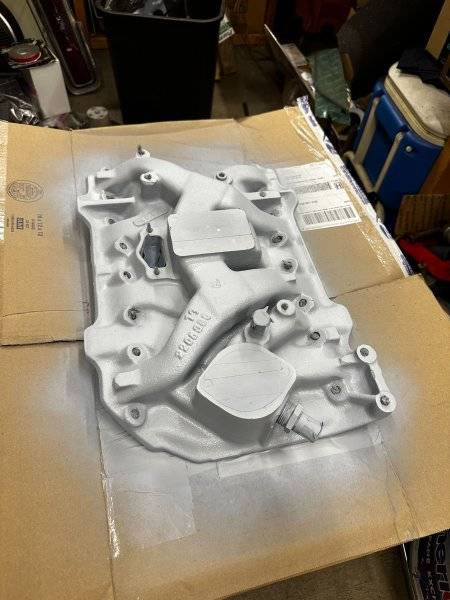 While the heads, intake, timing cover, oil pan and new water pump are off of the car, I am going to paint them up. I will have much better access to clean, prep and paint them for a nice finish. I already got the intake stripped back to bare, degreased, and just put the first couple of coats of flame-proof primer on. Hopefully the temperature rating on that will withstand the exhaust crossover heat. We will see. The remaining components will be painted up this weekend and ready to go the following. As for the block, I am going to paint the parts that I can reach (essentially just the front “V” and a little of the underside) in-situ for now. Unfortunately I am not in a position to pull the whole motor, so I am doing the best I can with what I have.