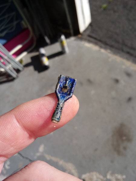 might be some kind of dielectric paste, helps protect from corrosion, which I noticed had blue paint on them. Any ideas as to why they were like this?