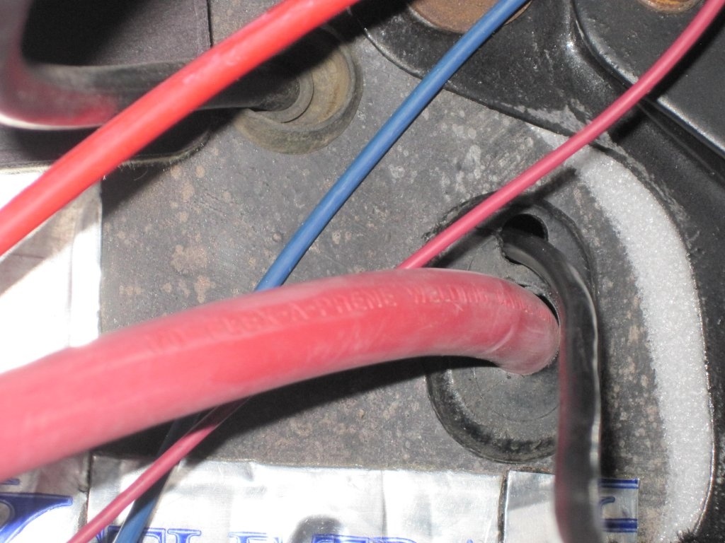 Started pre-wiring for the FiTech EFI system. This is the interior side of the grommeted hole for what would have been the manual trans linkage. Repurposed the grommet for both the 1/0 gauge going back to the trunk and for the EFI hand-held wiring.