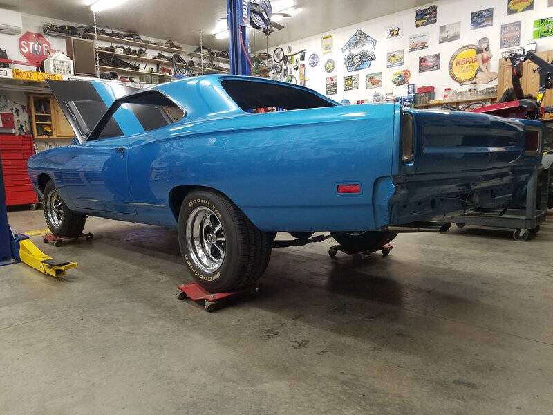 Got in a good productive day. Gas tank is in and hooked up, exhaust installed. Found some new, not made anymore Keystone uni washers, and got the wheels bolted back on the car. Been quite awhile since it has been a roller - it's a good feeling.