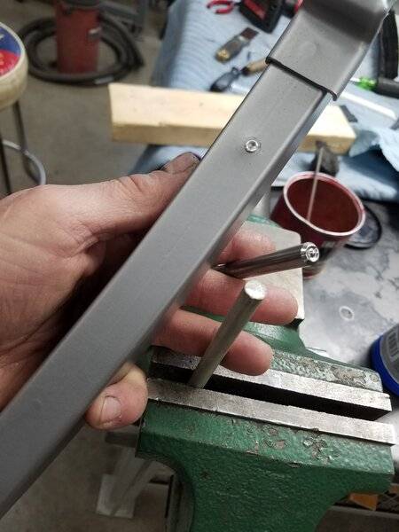 They are held in place with 2 rivets, which come with the new seals. You have to cut a hole for the nylon slide, cut to length, and punch holes for the new rivets. I used a piece of round stock in a vise and the punch I bought for ash tray rivets to reinstall. It actually went pretty smooth.