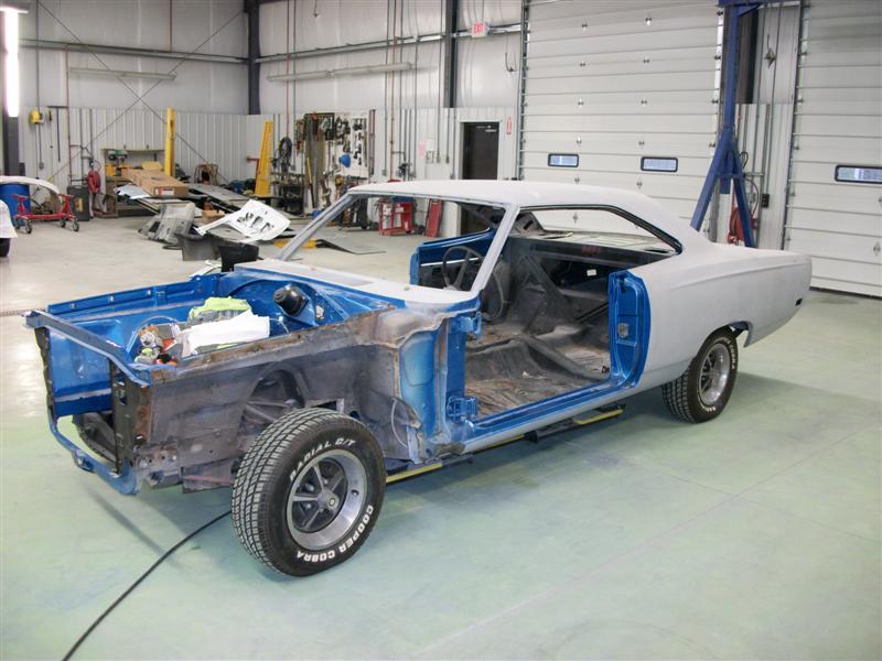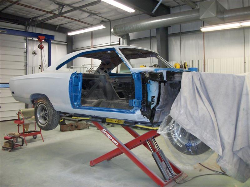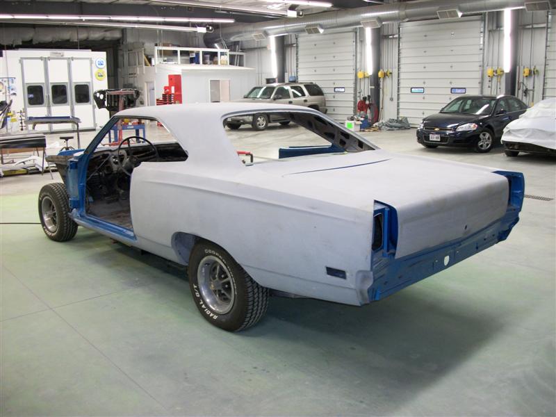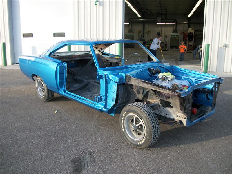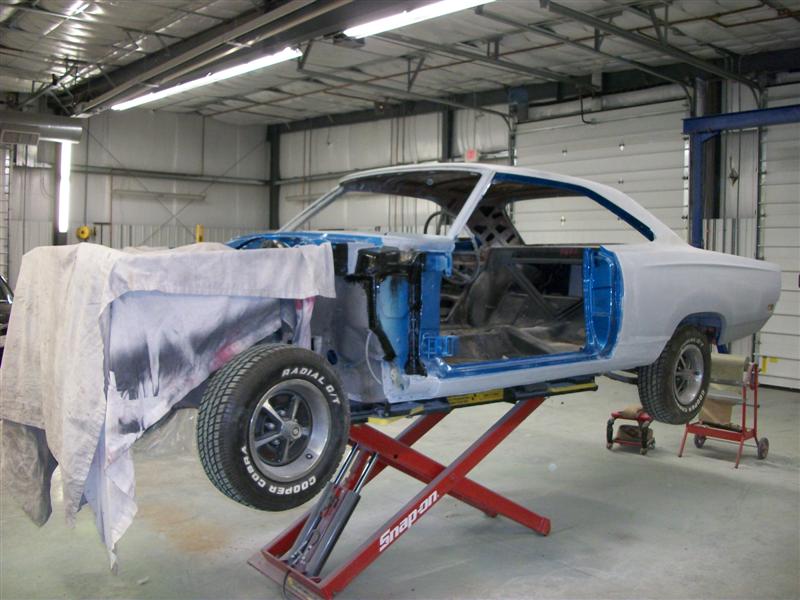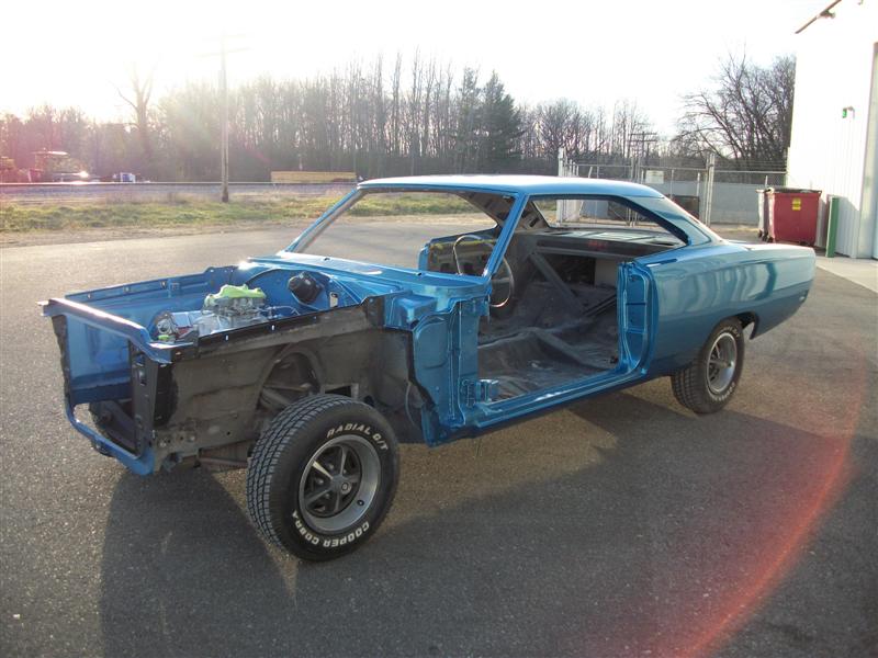 Here is my 69 RR tribute. It started life as a sport satlite and the previous owner had re done it as a RR. When i got it all that was there is a bare primered body. I have a 71 440 in it mild build 390hp. 727 with shift kit and 3000 stall. I have since gone over most of the body reprimed and painted. ordered most of the ruber and seals for the front half of the car and am in the process of putting it together. Had the motor running for the first time in the car on monday. Hopefully by next summer it will be done enough to cruise to the mopars in the park show in MN.