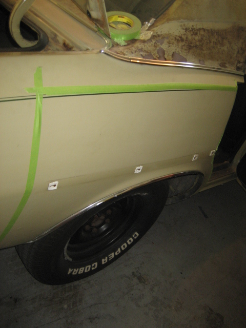 Thanks I got an electric orbital sander and some sanding discs. I use 80 grit disc then when I get down to bare metal I use a sanding block with 120 to 400 grit to help remove some of the deep scratches. Takes a while I'm doing a small section at a time. Also using a wire wheel that fits on my 4 and a half inch grinder. Once I get a section down to bare metal I wipe down the surface with laquer thinner til the surface is clean. I wipe it down with tack cloth then prime. I If using an electric sander on the roof don't push too hard on the sander you will dent the roof. Hearing protection and dust mask is a must. As for the body filler in the seams I used a wood chisel and just tapped the filler out with the chisel and hammer then ran the wire wheel over the metal to clean it up. The quarter panel I'm gonna fix. That patch panel is seperating at the door opening and the rivets are comming throught the body filler. I haven't worked on the car in a couple of weeks. Due to flare ups with my medical issues. Hopeing to get bact to it this week