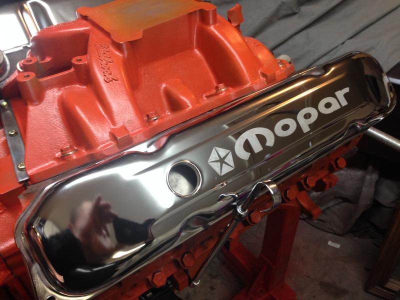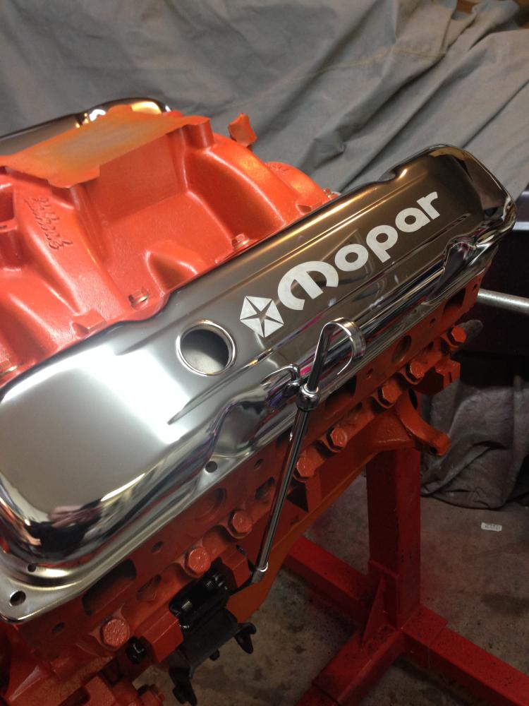 The slant six valve cover uses 1/8 chrome trim and black paint. Cost just a couple of bucks because I had both items already on hand. Anyway, cheap 'fins'.