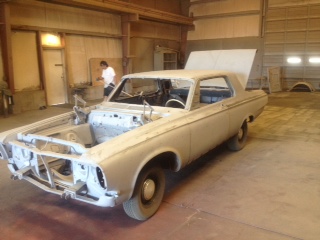 Thought I would post a bit about my project here. I am restoring my Dad's 63 Sport Fury. He had the car from sometime in the 70's until he gave it to me a couple years ago after being diagnosed with cancer. Sadly, he passed away this June, so my brothers and I are doing what he always dreamed of with the "Beast" (that is what we called it as kids). We have had the Beast media blasted and epoxy primed.