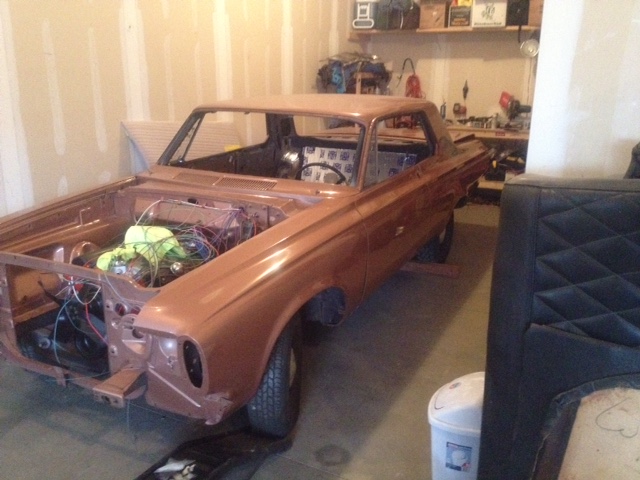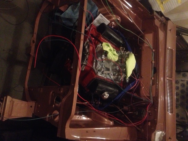 Well guys, project is still moving along, a bit slower though. I about have the engine ready to go; just need to connect fuel lines and belts and hoses and stuff. I am just about finished with the fatmat insulation, just need to add some to the roof. I've started running some wires and having the EZ wire harness spread out a bit with wires ran to the front and back it doesn't seem quite as daunting. Anybody know why my pics are always sideways???