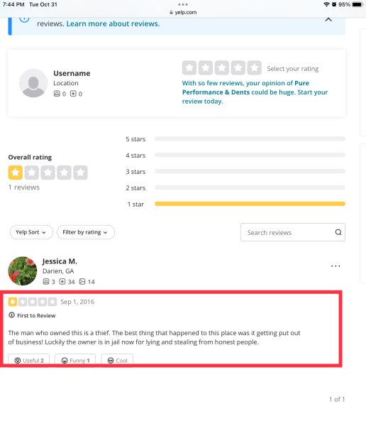 I read that the guy was eventually put in jail and wondered if Bruzilla had something to do with it. That dude really screwed me over, along with many people. Really hoping he got what he had coming. The pic is a screenshot of the yelp review lolView attachment 1549250