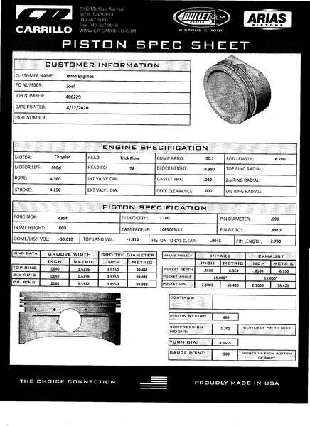 The pistons show a 30 cc open dish, so with a 0.040" head gasket, compression ratio should calculate to about 9.35:1?