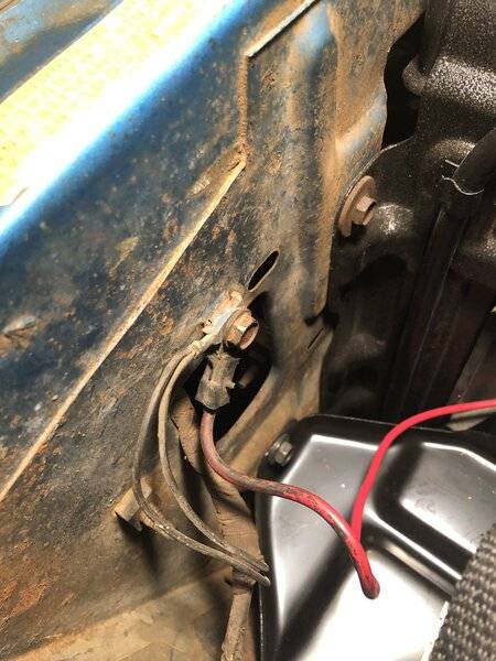 This is the standoff bolt for the ground on the 70, down on the core support between the battery!