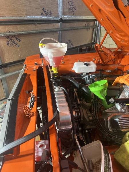 I was going to use this and go for a drive then do it again. Almost finished sealing front of radiator. Bottom hose now has spring. New coolant and water wetter. I also think I’ve found my oil leak I’ve been trying to locate since first start. It’s the valley cover. But have you ever seen one that is beveled and wedges under the heads? How the f@&$ am I supposed to fix this?