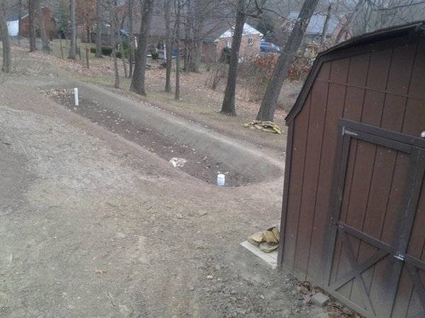 I was able to get 1" of fall from right to left without it being terribly noticeable. I only mocked up the downspout as I needed to move it out some in case it rains before I get everything connected together.