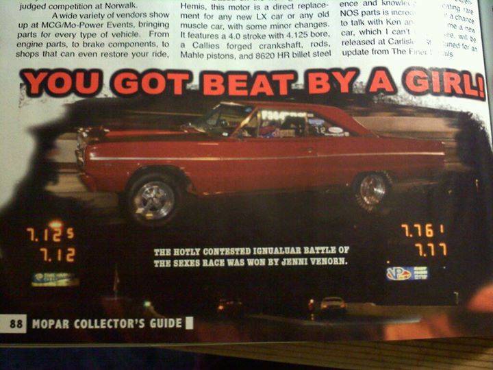 well Jenni my daughter. after she won two championships in the Jr dragster . she got in this car and won 3 more. Now It just Me and Fred my racing partner he is 78 years old. been letting him drive. He has won a lot of championships in his own cars. But he is to old to work on them anymore so.. I let him drive he got just a few more years in him. I have lots of fun I have won races myself. But enjoy. watching and working on the car too. If I want to drive I just kick someone out LOL