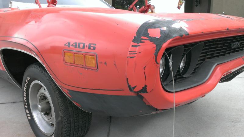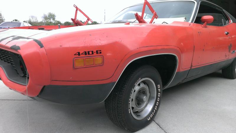 Hello again everyone! I've been inactive for some time and haven't posted any updates on my RR clone...because I may have come across the deal of the century! Well, maybe not THE deal, but for me it's pretty close. I traded my half-finished project for another project: 1971 TorRed GTX 440+6bbl. Unfortunately though it's back to square one, but most of the car is there and some of my new parts from the other car can be used. Some of you may have heard of or seen this car floating around the internet at some point, but the back story in short (to my knowledge) is it was purchased new, driven for a few years then converted into a drag car in the mid '70's and raced as 'Nikki's Toy' then parked, lost, sold a few times and traded, then I ended up with the car. I'm planning on doing a full blown rotisserie restoration on it, and it will definitely take some time. I'll be doing my best to keep the updates rolling, although they will probably be far between.