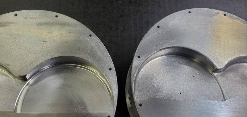 After using pin buttons, I’ll never order those pesky spirolox on custom pistons again.Shocks are shipped. Axles at the machine shop. Sanded the sharp edges left from the valve pocket machining. Cleaned everything up. Reinstalled the rods to the pistons enjoying all 32 Spirolox. Rings reinstalled. Pistons and rods back in the block. Torque and check rod bolt stretch tomorrow.