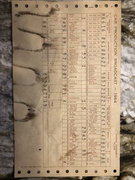 Long shot, but does this build sheet belong to anyone’s car? Came with a 64 Polara 500 I just got, but it doesn’t belong to my car. The car originally came out of New Mexico and apparently had the front buckets swapped out at some point. This was found in the passenger seat back. It’s in great shape so it would be a good addition to the car it goes with. If it’s yours, just pay shipping and you can have it.