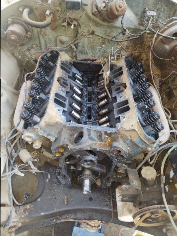 Spent some more time in the garage today. got the old motor partially disassembled so I could put the cam and lifters in the new motor. The cam was fairly new when the motor let go so barring any damage or excessive wear I was planning on reusing the cam in the new motor. Cam looked good. Moved all the lifters to the same position in the new motor. Lots of work still to go with cleaning of heads, intake, water pump housing etc.