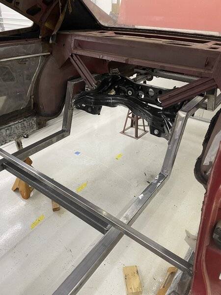 Got the rear crossmember cut down and fitted in the new frame rear section. Next will be drilling all the spotwelds out of the rear floor that was cut out and then fit the frame into its spot.