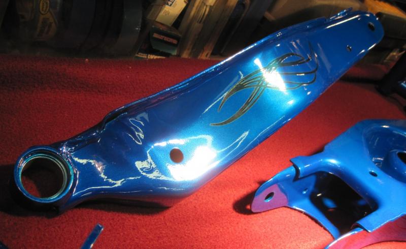 Though regular paper stickers won't work to my knowledge, vinyl decals can be embedded right into (or on top of) any powder for a custom look. Here's a 2005 Magnum control arm before, during and after for you tallhair ...