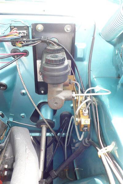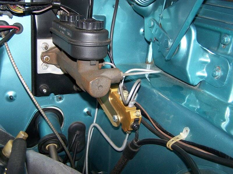 Someone already posted my pic but there's not much to installing an adjustable proportioning valve. On a disk/drum setup you just splice it in the rear brake line. Did mine right next to the master cylinder where it's very easy to get to and adjust.
