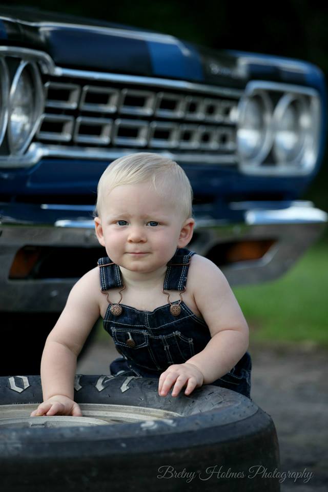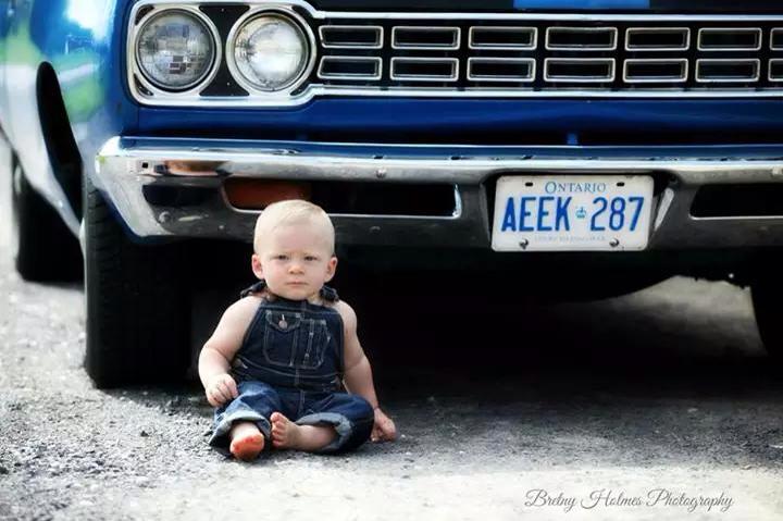 Now that is cute ,but as he gets older he not going to like the cute part good looking lad there and a nice car too!