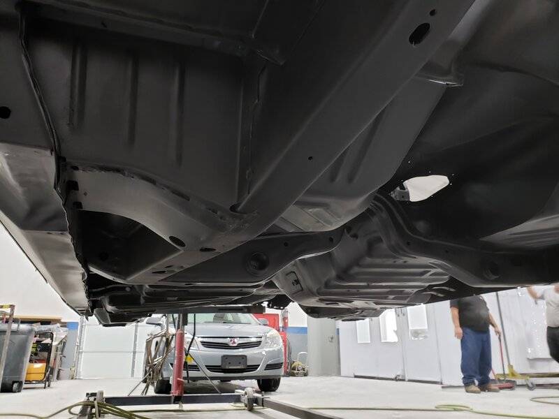 I based and cleared my underneath since it was chemically stripped, I have had a clear issue near my mufflers where its gotten hot, and since driving it a bit gets kinda beat up underneath behind the tires so I have since spray some SEM undercoat in those areas behind the tires under the car on the rockers, outside edge of floor pans, and the pinch welds, and inner fender wells. it does help fade the pinch weld out when your at a distance looking at the side of the car.