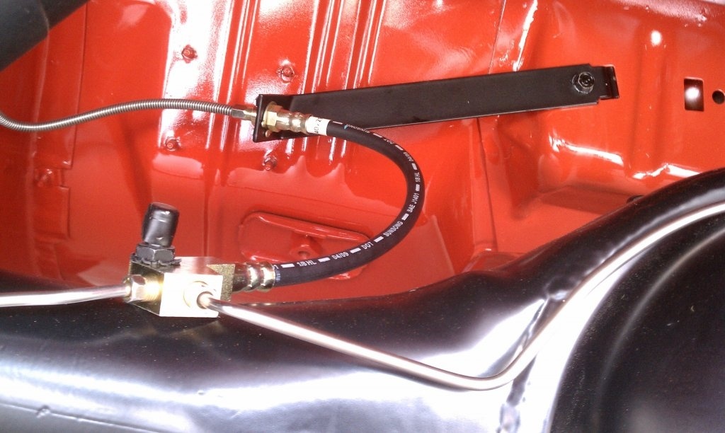That goes on the rear of the car, right above the rear end. It's for the flex brake line
