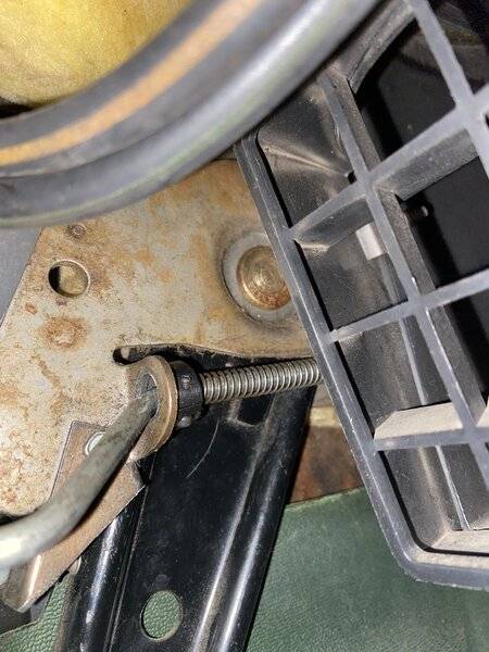 I used a zip tie for years to prevent the spring from going thru the hole. Don't make it tight on the rod, just loose enough for the rod to move.