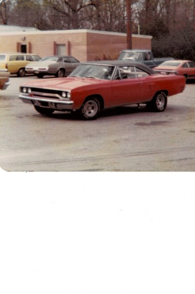 Here's my 70 Roadrunner, built 383, built 727 with Cheetah valve body and zoom 4.10 rear gears, sitting in my high school parking lot circa 1976 or 77.