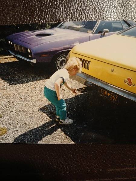 More from that time in my life..lolThis pic should be on a beer can! Me around 22 yo. Had 4 muscle cars around my trailer...priorities! LOL.
